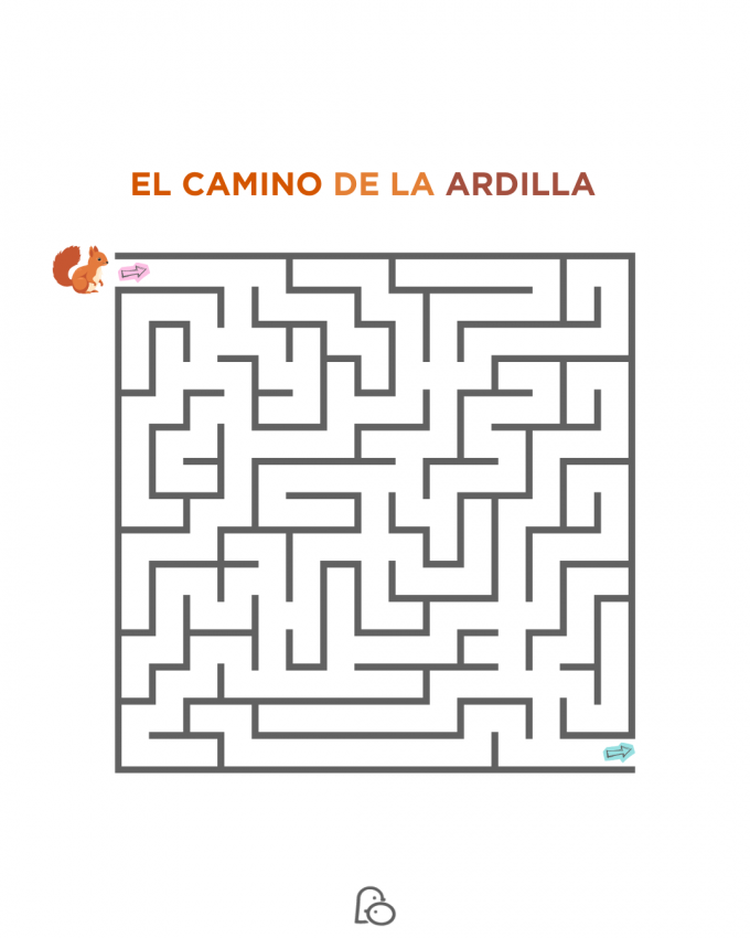 La ardilla se ha perdido entre las ramas y necesita encontrar sus bellotas antes de que llegue el frío. Una actividad ideal para trabajar la lógica y la concentración.