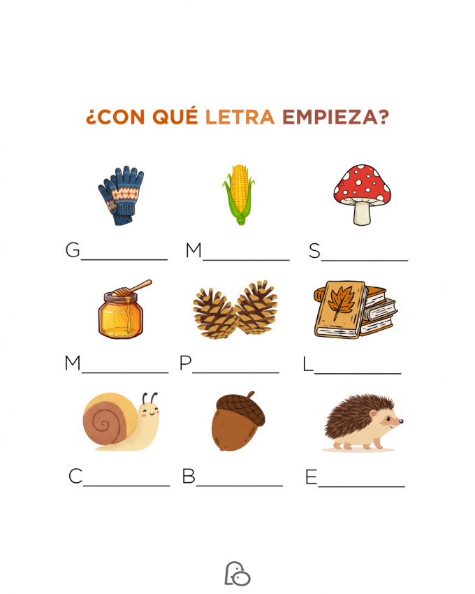 Una propuesta para los más pequeños: observar y completar la palabra con su letra inicial. Sencilla, educativa y muy divertida.